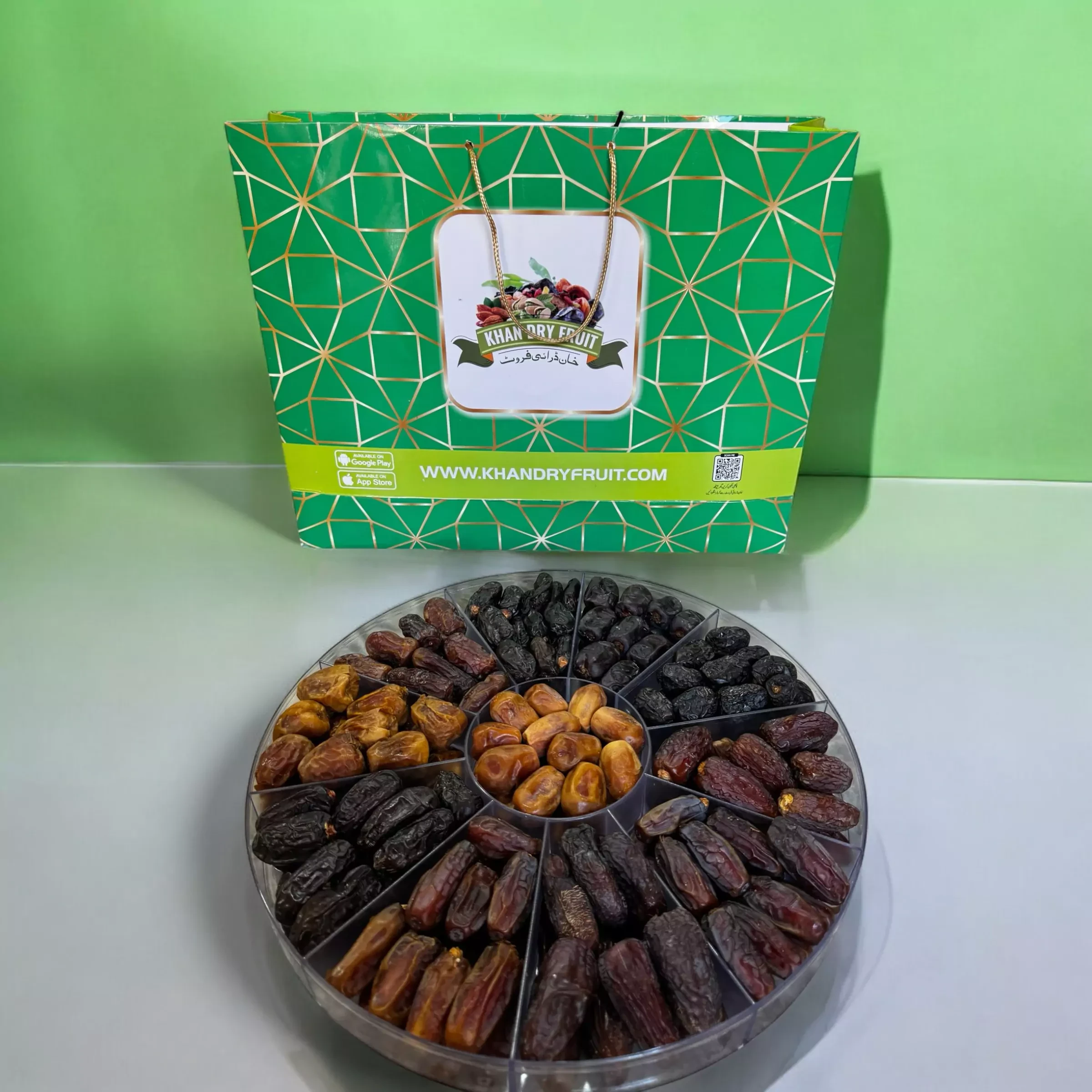 Each variety offers a unique taste—from naturally caramel-sweet Sukri to the bold richness of Ajwa and Mabroom, complemented by indulgent chocolate-coated dates. A perfect harmony of flavors and textures, ideal for gifting on special occasions or treating yourself to a premium date experience.